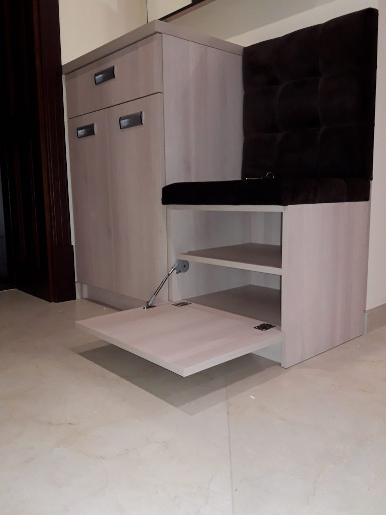 - Тумба для взуття. Вона може комплектуватися висувними шухлядами та полицями. Зручності додає ергономічна фурнітура. Вона дозволяє повноцінно використовувати корисний простір. Також тумби для взуття нерідко комплектують місцем для сидіння. Це забезпечить максимальний комфорт у передпокої.